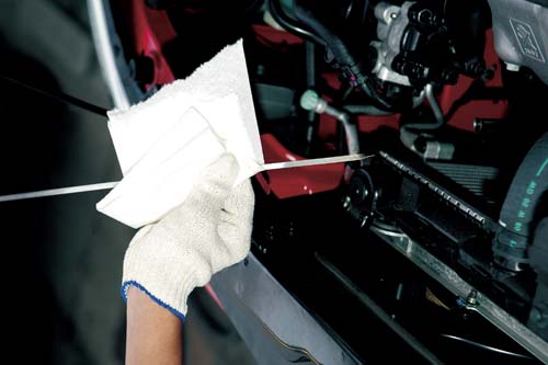 | 查油尺上的高低標,便可知道機油是否足夠。 |