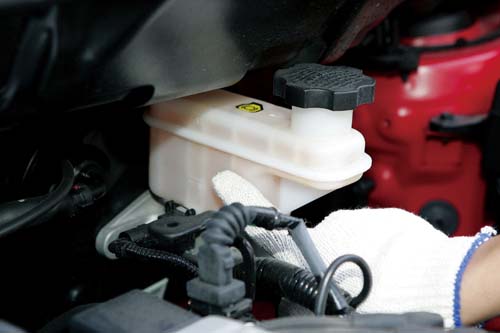 | 觀察煞車油量是否落於油壺上所標示的高低標間,通常位置再靠近防火牆的附近。 |