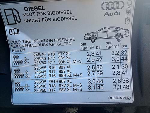 | 在不同配胎規格與載重之下,都有不同的適合胎壓。 |