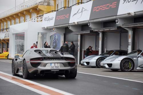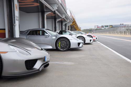 | 成排的918 Spyder從Pit中駛出,E-Power電力模式幾乎不發出一點聲響,Hybrid系統的特性此時嶄露無遺。 |