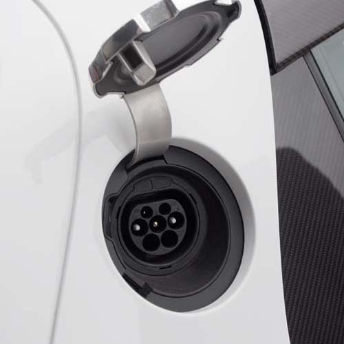 | 在兩側的B柱上都有添加能源用的接口,左側是油箱,途中的右側是充電接頭。 |
