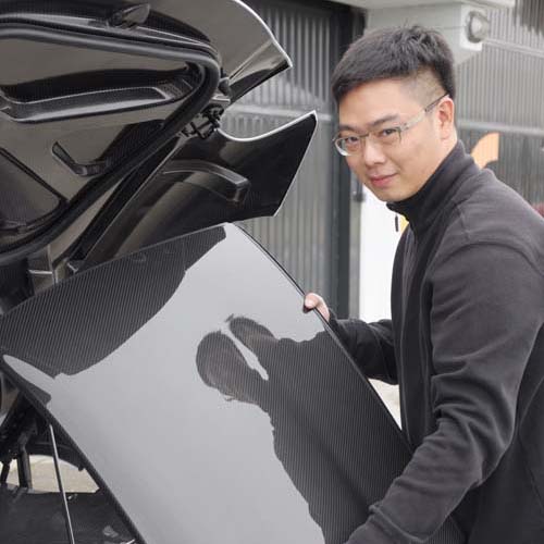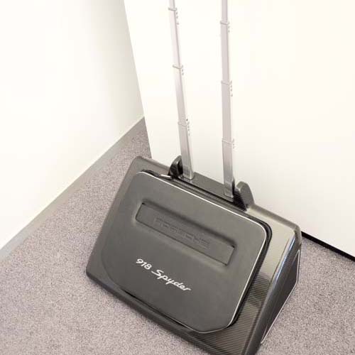 | 特製的專用行李廂以碳纖維製作,三角柱狀造型是因應收納車頂後的行李廂剩餘空間。 |