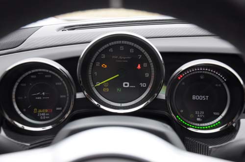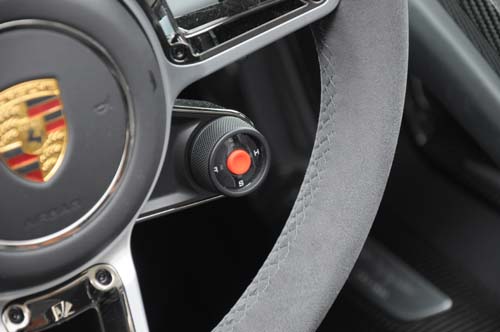 | 駕駛介面的設計十分簡潔,專屬於918 Spyder的方向盤上方有著多樣的控制開關。 |