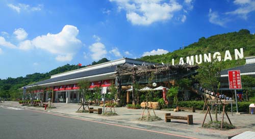 | 南頭服務區,以原住民文化為主題,內有販賣石板黑豬肉、國姓九份二山咖啡豆等。 |