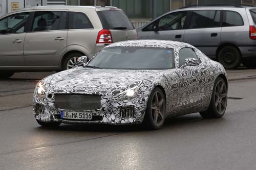 然而看看這幾張間諜照,鷗翼車門好像消失了?或許很多人會跟我們一樣,在意它的門到底是上掀還是傳統啟閉方式,畢竟當初SLS的誕生就是要重現300SL的榮耀,少了Gullwing,這部從之前據稱為SLC,現在又謠傳改稱為GT AMG的新興產物似乎與SLS的原始本質離得稍微遠一些,不過幸好它的樣子看起來好像更時髦。暫且不管車門將如何處理,GT AMG與老大哥SLS還是有不少相似之處,例如長車頭和短車尾的車身比例、偌大的車寬以及低重心的車艙,不過頂篷連接後擋風玻璃的弧線倒是跟之前有些不同。4.0升V8雙渦輪增壓引擎的設定應該是可能性最高的引擎選項了,排氣量縮小卻換上AMG最新的雙渦輪增壓系統,很容易就可以聯想到全新C63 AMG引擎蓋內的那顆心臟,動力輸出485hp最大馬力,但如果要在改朝換代後還可和Porsche 911或Nissan GT-R拚個高下,另外一種600hp的動力型式也不無可能。