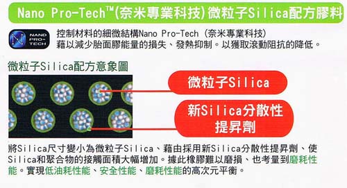 | Bridgestone開發的Nano Pro-Tech奈米專業科技微粒子Silica配方膠料,能夠讓粒子在維持一定間距下變得更小,並增加與聚合物接觸面積。 |