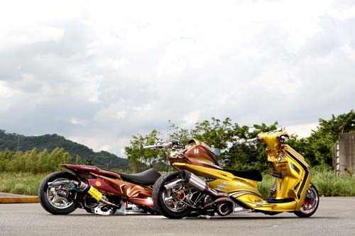 台灣目前常見的兩輪的後移改裝,大多是仿效日系低趴VIP改裝風格,這種降低底盤、拉長車身、超寬大汽車後輪、寬低的外露手把,追求超低的車輛重心,整個人好像是坐在沙發上,貼著地面滑行般的騎乘感受,外觀上輔以極盡誇張之能事的寬體套件,讓整台車有如一艘巡洋艦,車頭正面還會裝上讓大燈如生物眼睛般的鬼面罩,展現難以忽視的剽悍氣勢,通常還會再搭配電鍍、水鑽、亮皮格紋坐墊,打造出奢華的VIP風格。