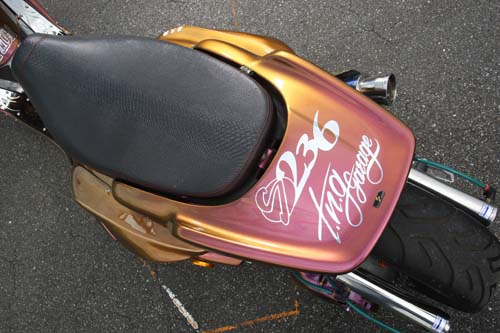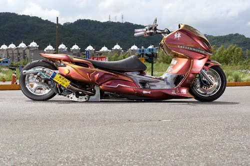 相較於日系大羊,早期台灣針對長途旅行的大型速克達可說是少之又少,直到1998年台灣山葉推出了Majesty 125,如同日系休旅大羊般的長軸距,高低兩段落差座墊、水冷系統、汽車級大燈、長風鏡,在當時可說是如其名的豪華帝王旗艦象徵。原廠修長低趴的車型本來就非常適合這種日系改裝風,S 236工作室為了讓車身能夠降至最低,但又能保有一般騎乘的功能,使用了氣壓式懸吊來改變車身高度。由於車身較大,在改裝時的限制比較小,要切除的車體結構較勁戰來的少,相對後續的結構補強也比較輕鬆。在拉長引擎吊架,將整套引擎系統大幅後移之後,當車身降至最低時,下吊架便直接充當整車的駐車架,宛如一艘巡洋艦靜靜停留在海平面之上,產生強烈的視覺衝擊。