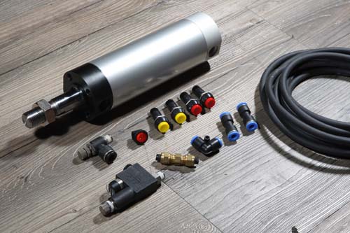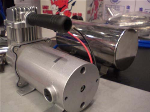 | 右上方的圓筒是儲氣瓶,左下方連接散熱鰭片的則是空氣馬達。 |