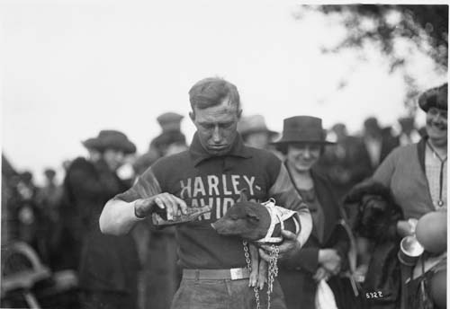 眾所周知,HOG這三個字母的縮寫,代表「Harley Owners Group」,也就是「哈雷車主俱樂部」。然而,「Hog」(豬仔)之所以象徵哈雷,得要回溯到1920年,在宣示一次大戰結束、和平時代重返的「Labor Day race at Marion」賽事上,車手Ray Weishaar與Wrecking Crew隊友騎乘哈雷連莊稱霸,並抱著一隻小豬作為吉祥物的留影。據說,這張照片是最早用「Hog」來比喻哈雷機車的歷史典故。這群在’20年代賽場上奔馳的「Hog Boys」,成為最早的HOG車隊團體。