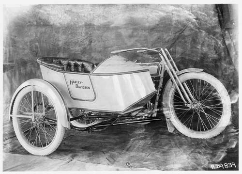 | 在1914年,哈雷車主可以買到邊車版的車款。當時,F-head單缸和雙缸引擎車款皆有配備離合器和煞車踏板。這種車輛是日本當時最需求的軍用車。 |