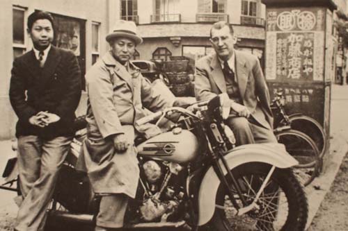 | 在美國哈雷Alfred Rich Child(右一)的奔走下,終於在’30年代中期將器材設備與人員運到日本,以生產HD VL車款。 |