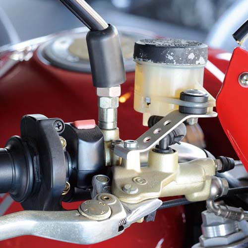除懸吊之外,煞車總成也非常重要。若煞車不能正確發揮功能,連要安全地停車都有困難。特別容易損傷的是煞車總泵,這是很常用的橡膠製零件。由於潤滑油耗盡或油封功能降低,致使雨水混入,一旦產生腐蝕狀況,會變得不能順利操作。不只有拉桿,腳踏桿也以手動動看(為了感覺細微的變化),確認作動是否流暢。另外,煞車卡鉗若有嚴重污漬,會影響活塞的動作。不只是外觀以及夾著煞車來令的內側要檢查,還要特別從縫隙中看活塞有無生鏽。檢查時,用小型手電筒可以看得更清楚。