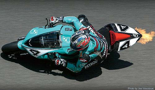 | 早在2004年時,Troy Corser當時所屬的Petronas Foggy車隊也來了這麼一招「先斬後奏」:先報名參賽,然後再將其賽車FP1量產。巧合的是,在2008年底確定效力BMW的Troy,騎乘的S1000RR賽車也是循一樣的模式問世。 |