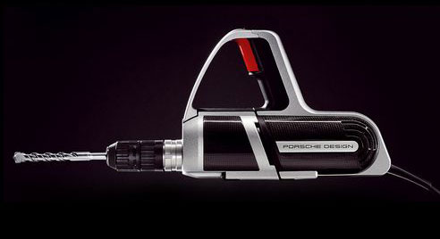 由Porsche Design創造的五金工具,不同於其它常規鑽頭握把位於機身上方,如此設計用意是為顧及操作者使用上方便,施放出來的力量得以完美平衡,例如:當欲鑽孔高於肩膀上方,鑽頭在使用者的手下方時,即可確保鑽入力量平穩並可感到操作上較輕鬆,此外,機架更採用真正碳纖維鑲嵌其上,質感獨特搶眼。