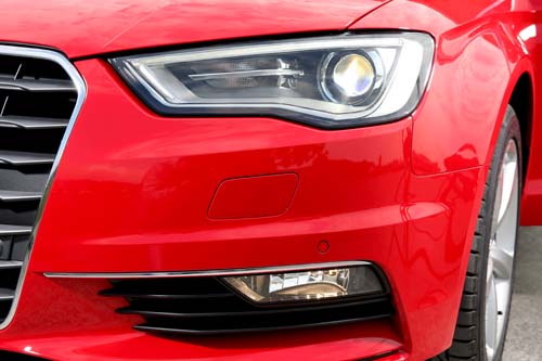 許多以掀背車為基礎衍生而成的標準房車都有著線條不俐落的問題,這是因為在開發時並未針對四門房車的造型需求進行造型上的修改,可說是勉強而成,不過A3 Sedan並沒有這個困擾,流暢的車頂線條以及渾然天成的車尾造型一開始就為這部車博得了相當好的分數。在車頭的部分,A3 Sedan採用了Audi傳統的大面積盾型水箱護罩,搭配具備LED導引光條的頭燈組合,構成了傳統而具備科技風味的Audi車頭外觀。在車身側面的部分,A3也使用了高腰線、車窗低扁的造型設計,而特別強調力量感的設計也讓這部小型房車擁有相當濃厚的運動感。在車尾的部分,略為上翹帶著類似小鴨尾風格的行李廂蓋有著類似S車系的動感架勢,尾燈當然也採用了LED技術製造,整體的車尾線條亦是帶著濃濃的運動風味;不過美中不足的部分是A3 Sedan的車身寬度始終不如尺寸更大的A4、A6,雖然車身線條刻意拉伸,但A3的車身看來還是有點瘦高,選配S-Line懸吊降低車身應該可以改善這個現象。