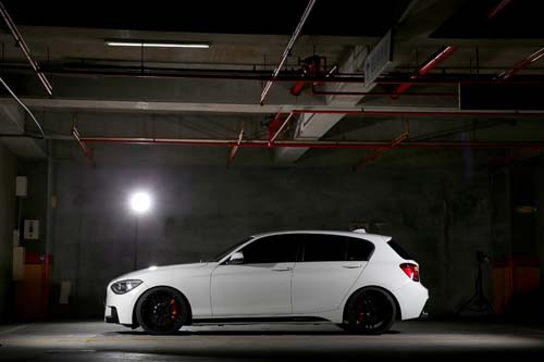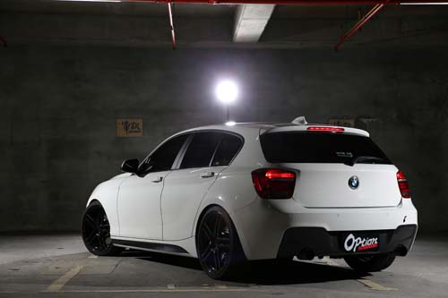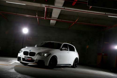 另一台白色的116i的車主表示,他們倆之前有私底下比較過,雖然116i與118i在帳面上少了幾十匹馬力,但實際上開起來的感覺決差異不大,如果玩外觀的其實也夠用了,跑山路還是看底盤的設定與車手的技術,除了一開始調教時動力輸出的差異,這兩輛車在內裝底還是底盤基本上都是一樣的,因此選擇116i作為代步與玩樂的小車。這輛116i主要針對外觀、底盤、內裝來升級,動力部分只換上了BMC 高流量空濾,再加上一組訂製的全鈦手工左右雙出排氣管。而在操控方面,換上一組Prodriver GC05的 19吋鋁合金輪圈,制動則是升級了BMW Performance針對新的1系列與3系列的原廠升級套件,前對向四活塞370mm、後對向二活塞345mm碟盤。再來的是內裝,車主同樣採用了BMW Performance一系列升級套件,包含賽車椅、麂皮方向盤、七件式碳纖維內飾板,以及一組P3 Vent Integrated Gauge LCD 儀錶。最後再加上一組M-TECH 空力套件大包為愛車妝點一番便大功告成了。