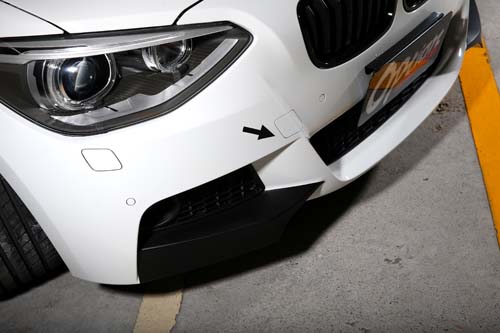 首先來看這台灰色的118i,動力方面目前是原廠狀態,由於還是新車沒有過保固,車主表示現階段也不會想去動太多,直線加速7秒多一般代步綽綽有餘了。由於車主常常跑山路,對操控的要求比較高,所以覺得原廠的懸吊略顯不足,買來後先更換了KW V32避震器,接著降低車身30mm,果然車輛的穩定性獲得顯著的提昇。此外引擎室裝了前拉桿與下拉桿,在高速、山路都變得更穩定,不再只靠避震器在支撐,讓這輛整體鋼性變佳,但必盡車架變硬了,很輕微的小震動還是會有。接著下一步便是將輪框升級至19吋,抓地力與操控性也增加許多,且拜輕量化材質所賜,雖然整體尺寸加大不少,重量卻比原廠還輕,有效降低簧下重量。為了提升制動性能,車主選用了AP前六後四活塞卡鉗,並加大碟盤順便填補輪框升級後的空缺。此車還換裝了BMW Performance性能加裝套件排氣尾段,不過這根排氣管是給BMW 125i用的,所以實際開起來變得比較虛一點,油門要踩更多才會有原來的感覺,但是聲音變得好聽很多,以及視覺上的升級。車主表示,等到之後已經可以開出這輛車的極限時,再朝向更改晶片的方式改裝。