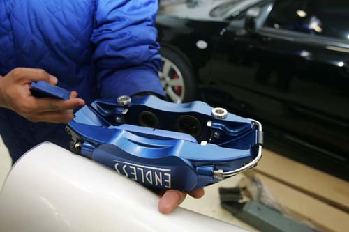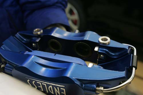 在完整的煞車系統中,除來令片與碟盤搭配外,更換多活塞卡鉗也是種極佳的方式,但這種改裝方式,卻存在最多問題及風險,整個環節中只要一個零件不良或是斷裂,就會導致嚴重結果,其中最容易被忽視的就是卡鉗轉接座與固定螺絲,由於在煞車卡鉗附近會產生高溫,加上煞車產生的減速力道、路面與輪胎的磨擦力,以及全車重量集中於此,所以Endless對螺絲與轉接座強度要求等同於卡鉗,而卡鉗甚至因高壓鍛造的材質密度太高,連著色都有困難。