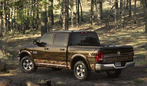 隸屬Chrysler旗下的Ram Truck,在Chrysler歸併到Fiat集團之後,再度發揮影響力,讓蟄伏了一年的皮卡Ram 1500 Mossy Oak Edition重新復活。此次的改款鎖定目標為愛好狩獵、露營和釣魚的戶外活動玩家。這部以Ram 1500 4×4 Crew Cab Outdoorsman為基礎加以設計的車款,可以選擇3種外觀配色,並皆以長滿苔蘚的橡樹迷彩來處理車斗兩側的下緣配色。內裝方面也充滿野性色調,於中控檯、門把等處以迷彩飾板來點綴,椅背亦繡有Mossy Oak廠徽,男人味十足。