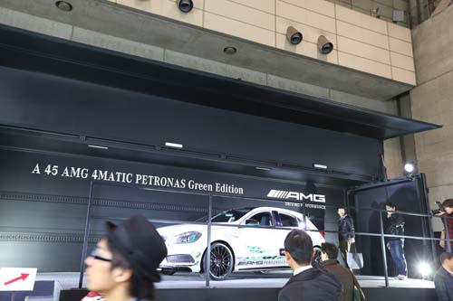 日本東京改裝車展算是一個「本土味」極為濃厚的車展,不過近幾年有了些許改變,以Mercedes-AMG來說,可是第一年參加東京改裝車展,為了吸引目光,車身甚至使用了「吸睛」度滿百的烤漆。從2010年開始,Petronas便與Mercedes AMG F1車隊有著密不可分的合作關係,因此選在2014年的東京改裝車展,推出特別打造的「A45 AMG 4Matic Petronas Green Edition」,以A45 AMG 4Matic為基礎所打造,動力諸元維持原廠不變,主要的改裝是外觀與內裝。外觀部分像是車身彩繪、尾翼、後下分流器與19吋圈胎等,而內裝諸如方向盤飾板、音響喇叭的邊框、排檔頭與座椅等,皆加入Petronas專屬的綠色,而且限量30部,創造出物以稀為貴的價值。