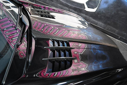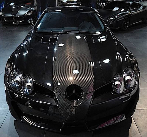 由M.Benz與McLaren聯手打造的Mercedes-Benz SLR McLaren,如同FerrariEnzo或是PorscheCarrera GT在車迷心中的地位一樣,絕對稱得上近代頂尖跑車之一,3.8秒就可以完成從靜止到100公里/時的加速,此外,它可以在10.6秒後完成超過200公里/時,達到時速300公里也只需28.8秒的強大性能,可說是完全為速度而生的絕美藝術品。而這輛由Mansory所改裝的Mansory SLR Renovatio,在引擎蓋、前保桿、鯊魚鰭進氣孔、側裙、後下分流器、A柱延伸至B柱與後視鏡蓋等處均使用碳纖維材質打造而成,再換上一組大尺寸亮面黑色輕量化輪圈,以及燻黑頭燈組,讓整部車散發出無比的奢華質感。