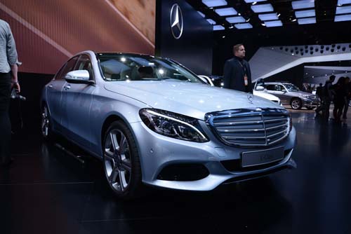 新一代M.Benz C-Class已於2013年年底進行發表,由於C-Class於美國市場銷量相當優異,因此亦於車展中進行首度公開展演,不難看出該品牌對美國市場的重視程度。全新C-Class外觀有著大幅的變動,採用新一代家族設計語彙,其中不論車頭或車尾,皆向自家S-Class看齊,更為成熟的造型彷彿是小一號S-Class。至於身形方面,全新C-Class將車身尺碼放大,而採用鋁合金打造的車身,也將重量減輕100kg,這對於操控與油耗皆有助益。