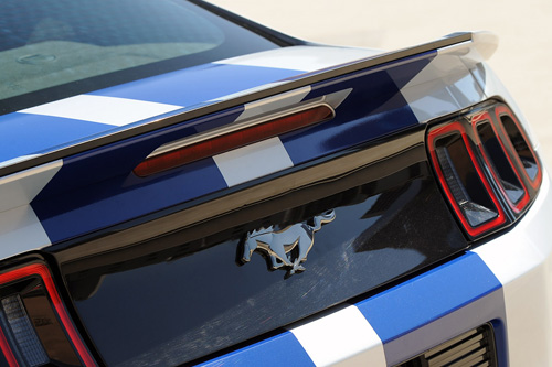 這款電影版的福特野馬,由福特原廠自行設計打造,在加大的輪拱設計下配有22吋的鋁圈,車頭下方的進氣柵和擾流片,引擎蓋上方的雙進氣口,以及兩道藍色的賽車條紋,更表現美式肌肉車硬派的風格,而引擎蓋底下則搭載了Shelby GT500的5.8升V8引擎,最大馬力可輸出900hp。