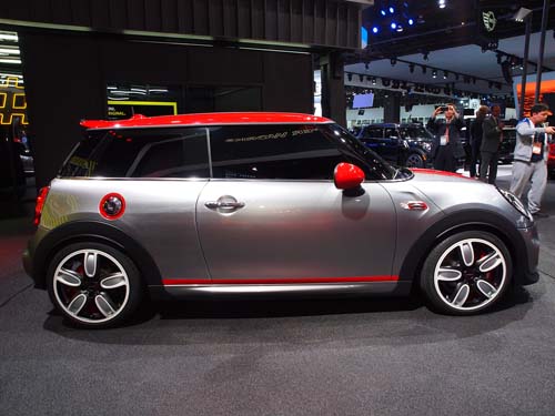 Mini於車展上展出Mini JCW Concept,雖為概念車,但整體與量產無異,新一代Mini Cooper也已發表,而JCW與一般車型最大不同便是獨特的專屬車身配色,從引擎蓋一路延伸至車尾的賽車線條,則散發不凡的性能特性,輪圈造型、卡鉗配色與車身套件,皆展現獨特之處。而經過強化的懸吊與性能,更是Mini迷中的逸品。