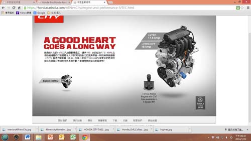 年初台北車展的Honda攤位上,原廠運來了尚未在泰國發表的全新一代Honda City進行展演,雖然官方說法表示,City的現身主要是為了藉由車展來試探市場溫度與消費者對於此車的反應,但經3月初台灣本田董事長牧野朗口中證實,CITY已確定成為Honda Taiwan今年除了全新Fit之外,所要推出的另一部「國產」重量級四門房車,時間則預定在今年第三季初。儘管泰規版City的造型並非國產車型的實際樣貌,但在Honda全球各區域車款已採一致性的產品策略下,國產版City的外型甚至是內裝扮相,預料與泰規版將有十之八九的相似度。