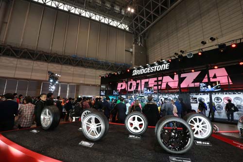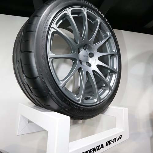 | 攤位上展示多款性能胎,像圖中的Potenza RE-11A與Potenza RE-11S,都是深受性能車友喜愛。 |