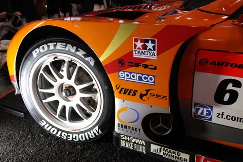 | 現場展示多輛使用Bridgestone Potenza光頭胎的Super GT廠車,證明Bridgestone輪胎的高性能。 |