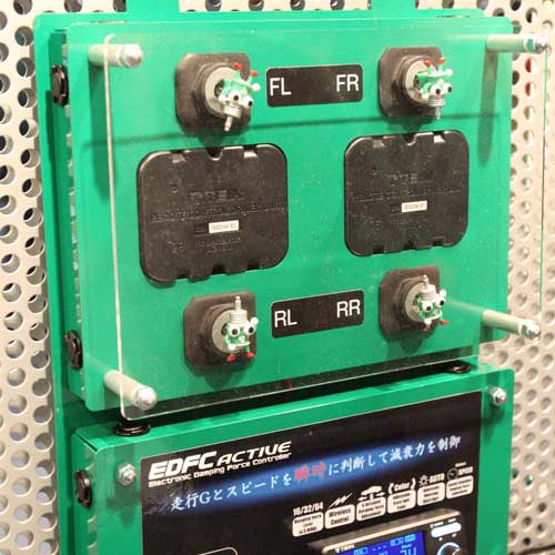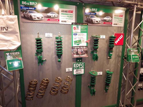 「Tein」這個避震器老品牌應該沒有人不認識,會針對不同使用環境、不同車款,推出不同型號、設計的避震器產品,Tein對於避震器的研究真可說是深入且透徹。攤位上也來了一輛Subaru BRZ,是用來展示Tein旗下屬於競技部品的Super Racing避震器,單筒式、外掛氮氣瓶、伸/縮側可獨立調整等設定,絕對符合競技用車所需。另一輛產品為EDFC Active Pro,這算是EDFC的進化作品,只要將車速對應避震器軟硬值設定好,在行進間會由GPS讀取車速訊號,到達車速便會自動調整阻尼,甚至可隨轉彎G值進行阻尼調整,是一項避震器高科技產品。