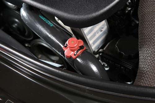 | T1散熱晶片安裝在引擎水道上即可降低水溫4~5度,對於台灣炎熱的用車環境相當適合。 |