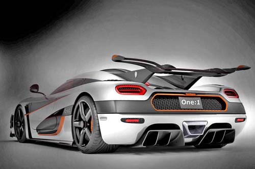 瑞典超跑廠商Koenigsegg將為日內瓦車展帶來驚嘆號,原因無他,只因其最新車款「One:1」將可能是全世界最快的道路量產車!在外觀上,One:1與同門兄弟的Agera S和Agera R明顯不同,最引人注目的莫過於它擁有一副巨大的尾翼,而且由安裝於車頂、一路延伸至車尾的兩支鰭片所支撐。這玩意兒可不是嚇唬人的,據了解它所能產生的可觀下壓力,足可讓此車輪胎在高速中仍緊黏住地面──即便是在其理論極速450km/h之下亦然。外界預期One:1的極速將會因為輪胎極限而被限制住,不過Koenigsegg很可能會將限速設定在415 km/h以上,以超越Bugatti Veyron Super Sport World Record Edition的紀錄。車名的由來,是其1400hp的馬力和1400kg的車重。這1:1的重量馬力比是將所有行車所需的水、油品及一位駕駛者算進去後的數據。因此,它將會成為0~200km/h、0~300km/h及0~400km/h加速的世界最速車。