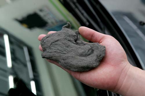 | 汽車玻璃專用的極細鋼絲絨布,可搭配除油膜劑一起使用。 |