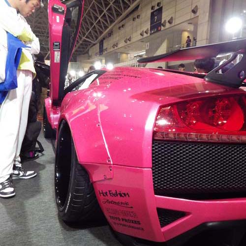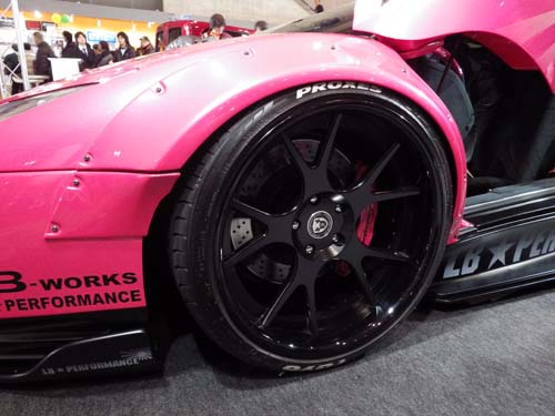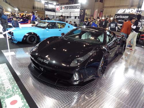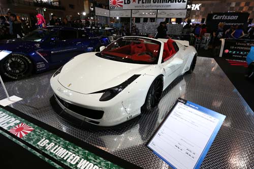 知名的日系改裝廠LB Works展示了數輛最得意的代表作,其自家產品最大的特色便是與眾不同的寬體車身套件,粗曠的鉚釘、連結側裙向外延伸的後輪弧曲線、從後方望去刻意外八的輪胎、幾乎貼在地面上的車身,以及裝置在Ferrari 458上的小鴨尾尾翼,都再三展露出LB Works獨特的自我美學,讓品牌的仰慕者為之瘋狂。