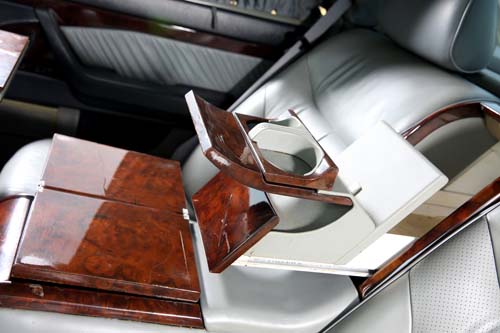 相較於先前車型,W140世代導入多項配備,當時可說是豪華房車的最佳代表,而本次參與的W140與一般的S-Class不同;當時這部W14由一位大老闆所擁有,車輛售價約300萬元,但前任車主又再將車輛送至比利時原廠進行花費300萬元的座艙配備升級。該車前座與一般W140無異,呈現相當豪華的氛圍,至於後座則是該車重點,不同於一般車型,後座配置多項商務配備,包含能提供文件或筆記型電腦擺放的辦公桌面,後座亦提供冷氣出風口。此外,冷氣上方更附有具有電視功能的螢幕,中央扶手則配有電話,於當時可說是相當豪華的配備;後座椅背中央更附有小型冰箱;然而後座最獨特之處則是配置了中央分隔玻璃,能確保後座談話的私密性。