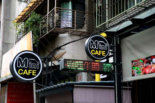 位於北市巷弄中的Mini Caf?有一樓與地下室,兩層格局占地約50坪,主要的裝潢以Mini的圓形,以及英國國旗所擁有的紅/白/藍配色為設計元素。在2010年創立初期,Mini Cafe的熱食服務較少,從台南北上就業、進而成家的老師,決定把當地有名的關東煮帶上來台北,就連食材都是遠從台南運達台北,在當時引起很大的迴響,之後,Mini Cafe陸續提供餐點服務,才結束關東煮的販售,所以現在看到門口攤位已變成烘焙咖啡的地方。