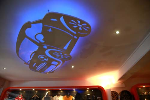 | 在天花板掛上Mini Concept圖形,再從後面打出藍燈,讓Mini的主題更為強烈。 |