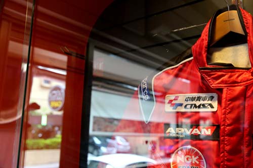 | 櫥窗內有一些Mini人身部品,有些是可以現場購買,而這件賽車服是老師比賽時穿的。 |