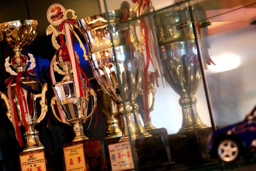 | 老師熱衷賽車運動,而且成績還算不錯,拿了不少獎盃。 |