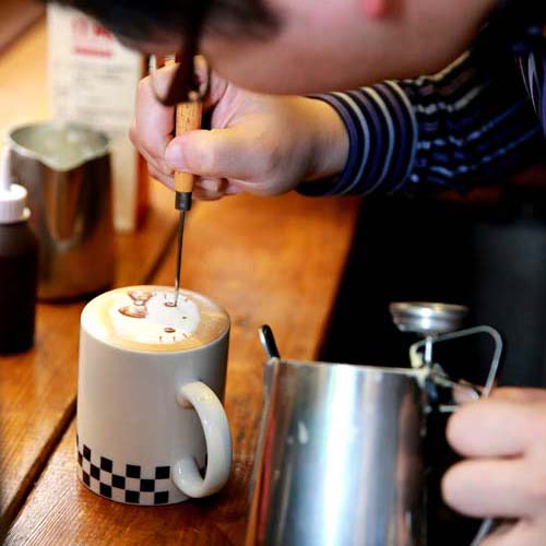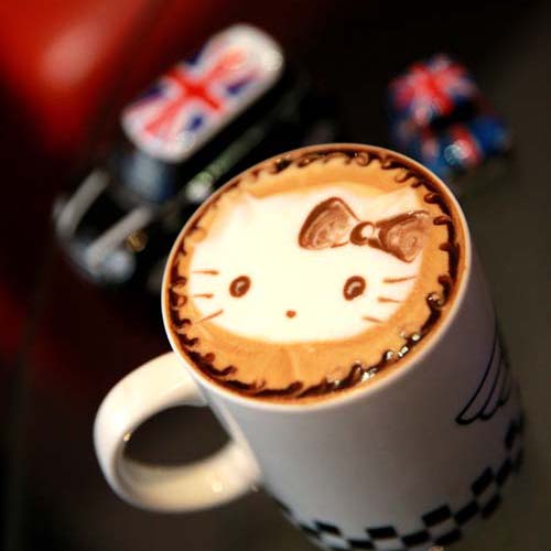 | 只要老師有空,就會在咖啡上拉花,在OP編輯部採訪當天就馬上拉出Hello Kitty,老師真是多才多藝。 |