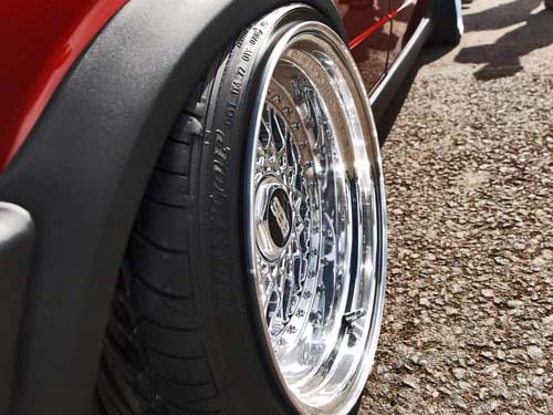 4.錯誤的胎寬選擇,這裡指的是將窄的輪胎安裝在超寬的輪圈上。之所以這樣做是為了要將胎壁放倒,好騰出輪弧裡的空間,減少輪弧與輪胎間的摩擦,但現在更多人則是為了凸顯出輪圈寬邊的效果。