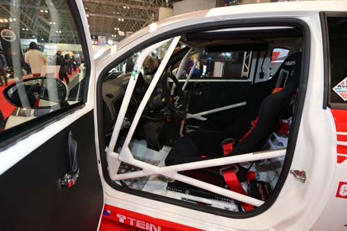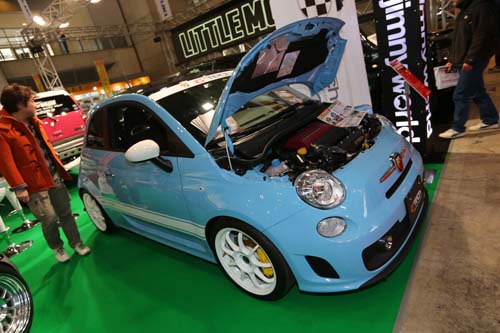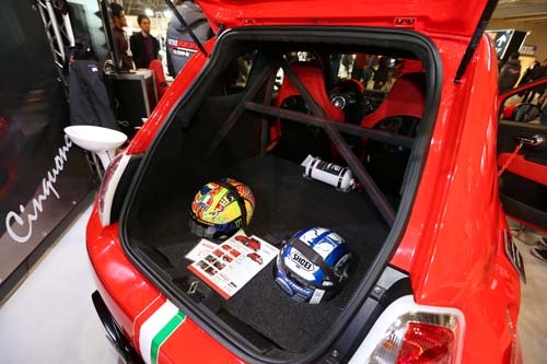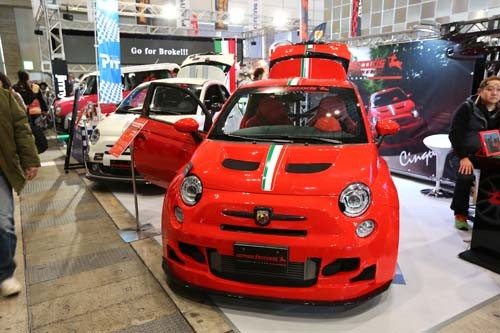 Type 312世代的Fiat 500也成為東京改裝車展中龐大的勢力之一,圓滾滾可愛的模樣向來迎合日本人的口味,因此眾多改裝廠牌也針對這部義大利都會小型車款推出改裝式樣,像是與Fiat淵源超過一甲子的賽車改裝品牌Abarth便推出Rally賽所打造的Abarth 500 Rally R3T賽車,有別於一般市售的Fiat 500 Abarth,這部合乎FIA認證R3組別工廠賽車採用的是1.4升直四渦輪增壓引擎,不過渦輪系統已換成Garret所製作的GT1446可變幾何渦輪增壓器,最大馬力達180hp/5500rpm,車內裝有符合FIA賽會規範的防滾籠、賽車椅及六點式快拆安全帶,裝備完整可說是強悍之至。
