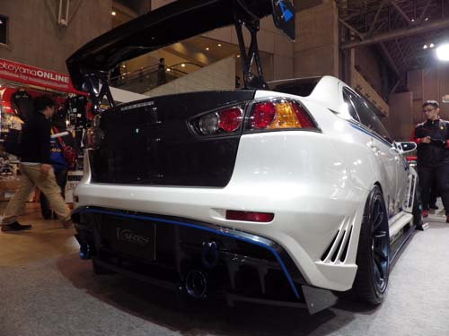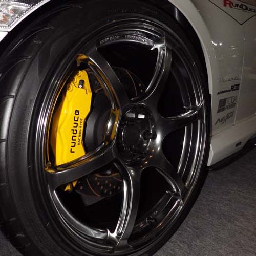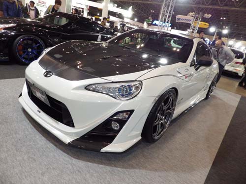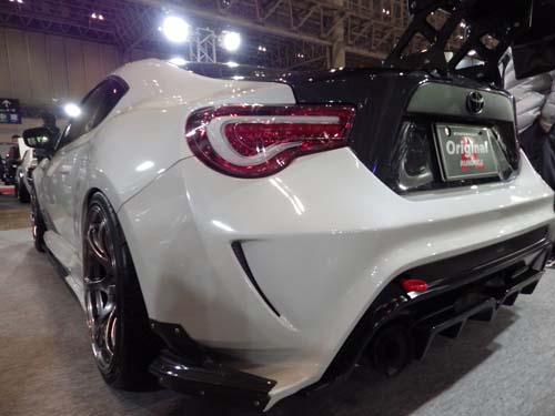 「Varis」算是專精於空力套件設計製造,但是跟一般空力套件品牌不同的是,Varis會幫許多比賽廠車打造空力套件,可想而知,Varis攤位上也有Toyota 86改裝實車,而且也是挑戰筑波賽道最速成績的參賽車。這輛「Original Runduce 86」改裝幅度非常大,改裝Original Runduce 2.3L套件再加上HKS GT機械增壓,最終獲得600hp最大馬力,傳動部分改裝OS強化離合器組與Cusco 1.5way LSD,懸吊系統則是改裝Original Runduce自家品牌的產品,加上19吋ADVAN RG-II鋁圈與ADVAN Neova AD08R輪胎,改裝完整度非常高,至於空力套件部分,當然是由Varis所推出的Arising-2系列,而此車2013年於筑波賽道測得的成績為1分01秒677。
