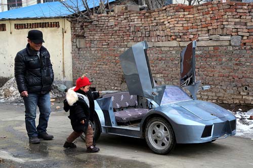 世界最小的「超跑」最近在中國的鄭州誕生了。這部超迷你的Lamborghini Aventador山寨版,是由一位50歲的郭姓農民親手打造完成,目的是為了要有一部酷炫的車來接他的孫子放學。這部電動迷你車極速能達到96km/h。很好奇它是用什麼材料打造的嗎?答案是廢金屬和老舊摩托車的零件!