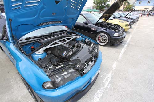 | 一字排開約莫8、9部的E46 M3車款,從前保桿內都裝有中冷器的跡象來看,全部應該都是增壓車,且以成熟度較高的機械增壓為主,嚴然成為最佳的火力展示場。 |