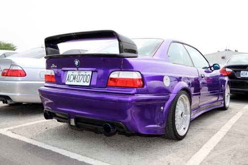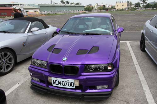 | 現場雖然陳列不少部E36車款,不過筆者認為改裝完整度最高的當以這部紫色塗裝的車款莫屬,前後寬體手工大包、M3式樣前保桿搭配鏟土式前下巴,車尾後保桿加裝大型擾流器與碳纖維曬衣架式尾翼,讓這部E36有著令人印象深刻的改裝效果,且內裝似乎也重新整理過,有機會筆者會找這位車主來談談改裝愛車的心路歷程。 |