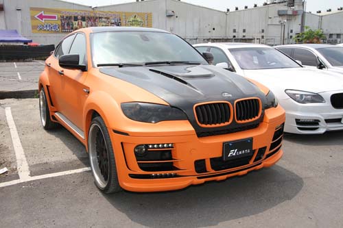 | 這部X6M是活動當天外型最搶眼的一部,全車採用Hamann推出的寬體鈑件進行改造,引擎蓋為開孔式碳纖維材質製成,且車色還依照Hamann Deamo Car的亮橘配色進行貼膜改色,讓整部車擁有侵略性滿分的視覺效果,開在路上想要不注意它都很難。 |